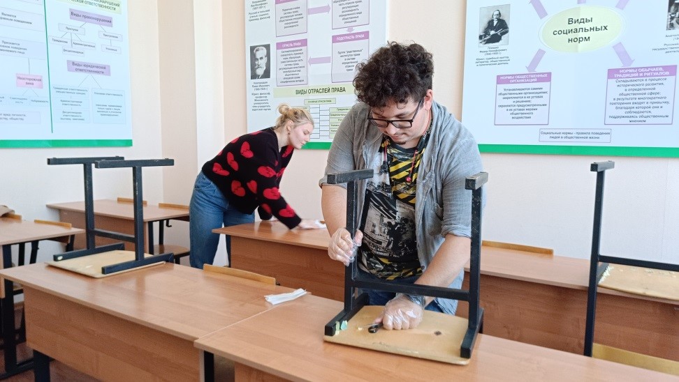 В ходе проведения субботника было проведено: обеспыливание оргтехники, информационных стендов и мебели в компьютерных классах и учебных аудиториях пятого этажа учебного корпуса.