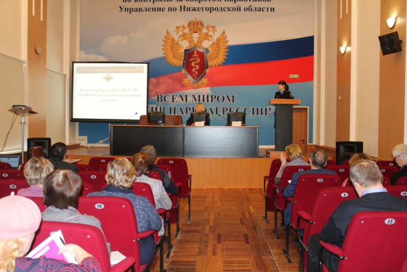В соответствии с решением Межвузовской антинаркотической комиссии при Совете ректоров вузов Нижегородской области 11 февраля 2020 года на базе Управления по контролю за оборотом наркотиков ГУ МВД России по Нижегородской области был проведен обучающий семинар для профессорско-преподавательского состава, ответственных за воспитательную работу со студентами, студенческого актива вузов с участием сотрудников УКОН и специалистов наркологов.